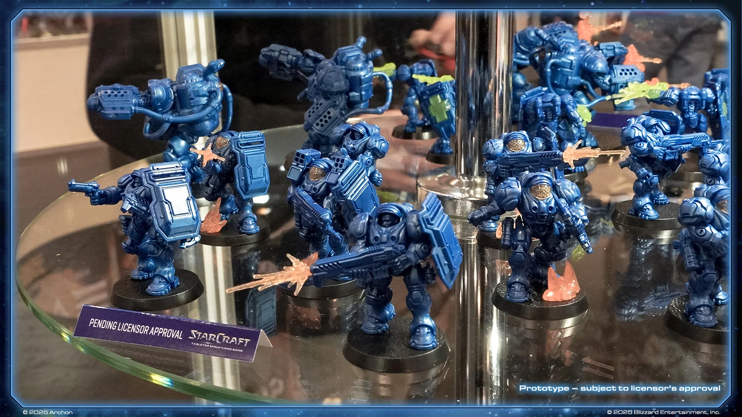하지만 제라툴만이 저희 부스의 하이라이트는 아니었습니다. 오히려 시작에 불과했죠. 올해 저희는 스타크래프트 TMG 미니어처의 실모델을 자랑스럽게 공개했습니다. 여기에는 HIPS 플라스틱 생산 버전과 여러 3D 프린트 프로토타입이 포함되었습니다.